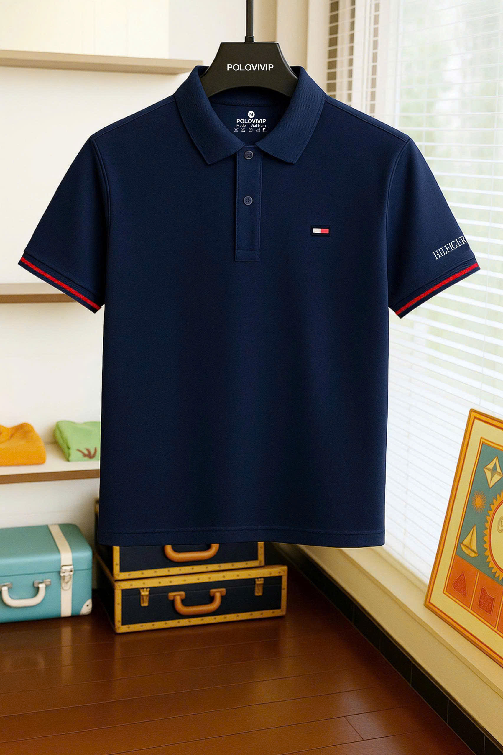 Vải thun cá sấu PE: Đây là giải pháp tối ưu nhất về ngân sách. Vải có ưu điểm độ bền cơ học cao, bề mặt vải láng mịn, không bị xù lông và giữ màu nhuộm cực tốt. Đối với tông màu đậm như xanh navy, vải PE giúp áo không bị bạc màu hay loang lổ, giữ được độ thẩm mỹ lâu dài.