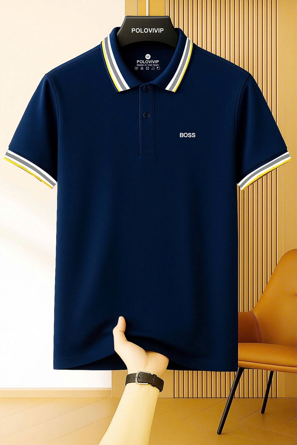 Logo in sắc nét: Logo BOSS màu trắng nổi bật trên ngực trái, được thực hiện bằng công nghệ in hoặc thêu hiện đại, đảm bảo không bong tróc.