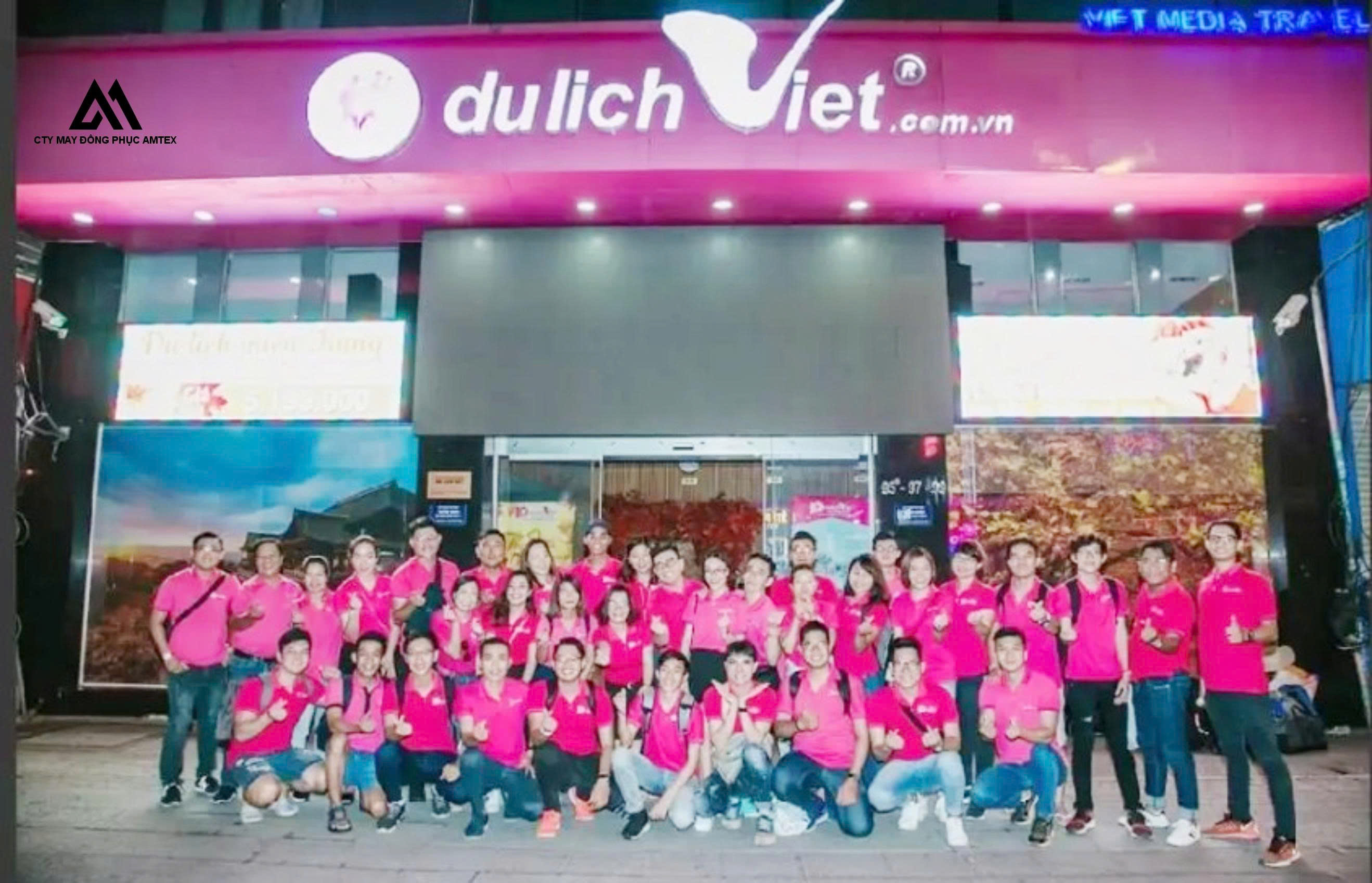 Mẫu áo thun đồng phục Du Lịch Việt với tông màu hồng đậm chủ đạo tạo nên dấu ấn thương hiệu mạnh mẽ và sự năng động cho đội ngũ nhân viên. Thiết kế cổ bẻ lịch sự kết hợp cùng form dáng tiêu chuẩn giúp người mặc thoải mái di chuyển, phù hợp cho cả nhân viên văn phòng và hướng dẫn viên dẫn tour.