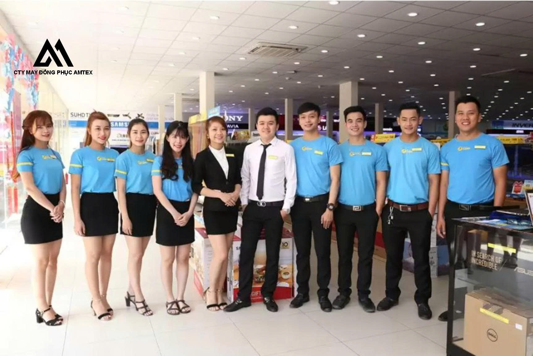 Để đáp ứng tính chất công việc phải di chuyển và vận động liên tục tại các siêu thị điện máy, Đồng phục Amtex ưu tiên sử dụng các dòng vải có độ co giãn và thoáng mát cao: