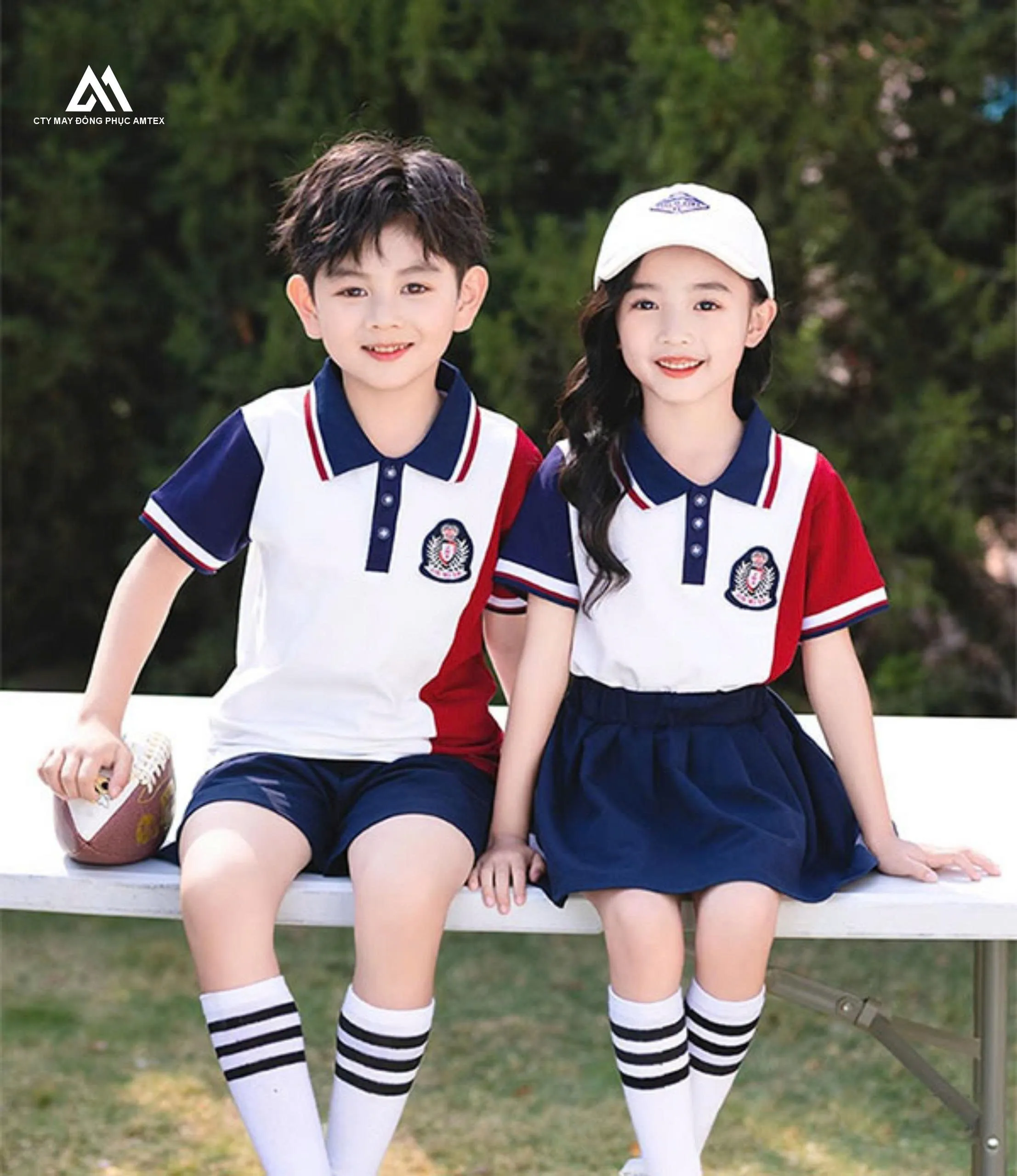 Phụ kiện bổ trợ: Có thể kết hợp thêm mũ lưỡi trai đồng phục cùng tông màu trắng hoặc xanh than để che nắng khi các em tham gia hoạt động ngoài trời.